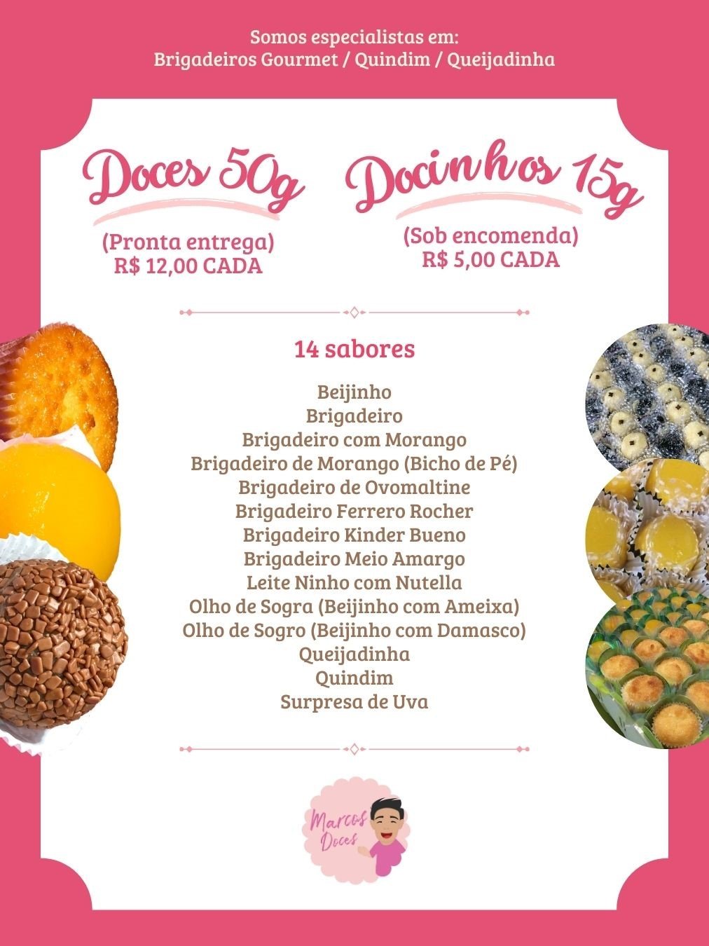 🛵💨Delivery Marcos Doces Docinhos de Festa Brigadeiro Beijinho Quindim Queijadinha