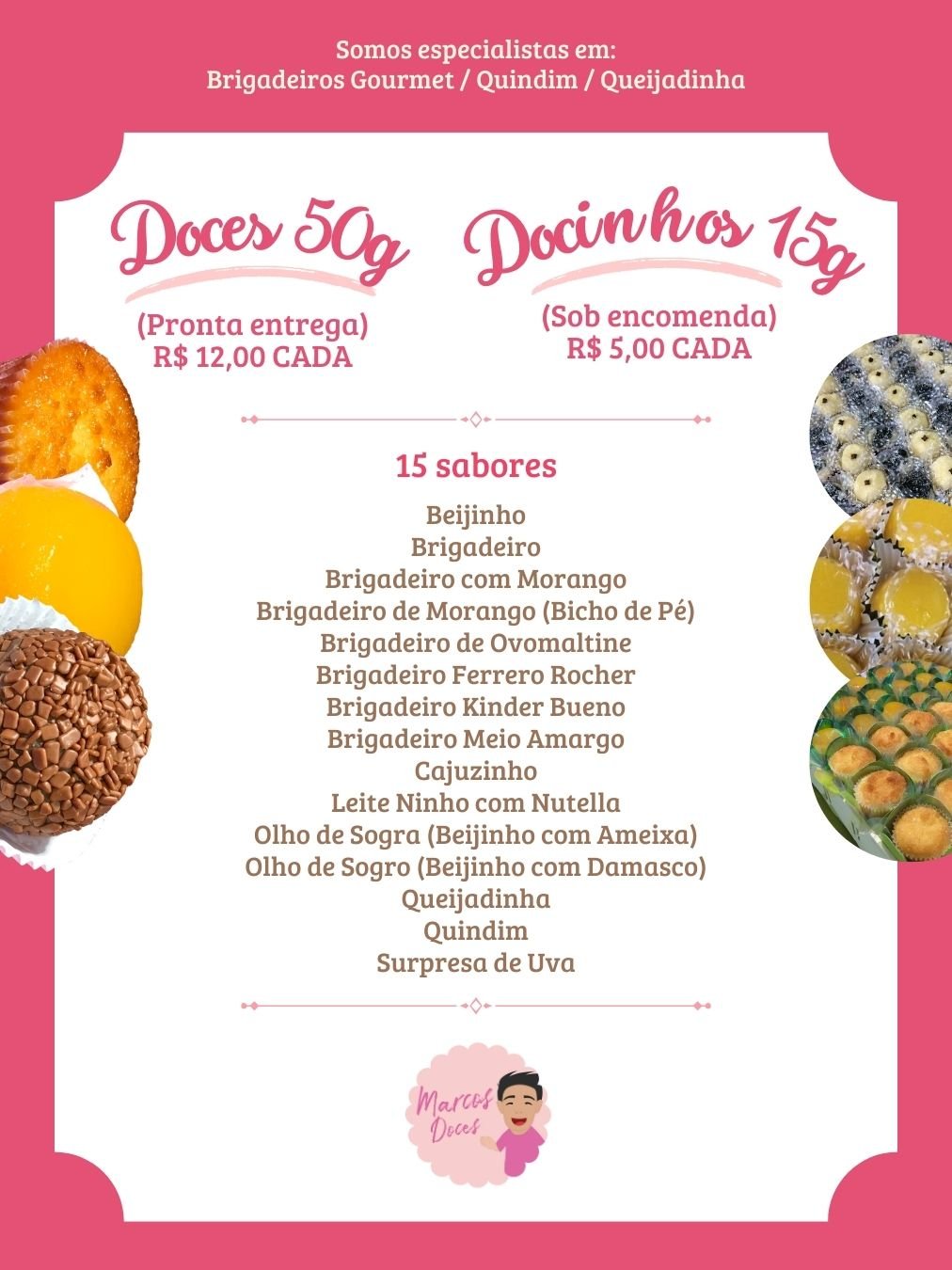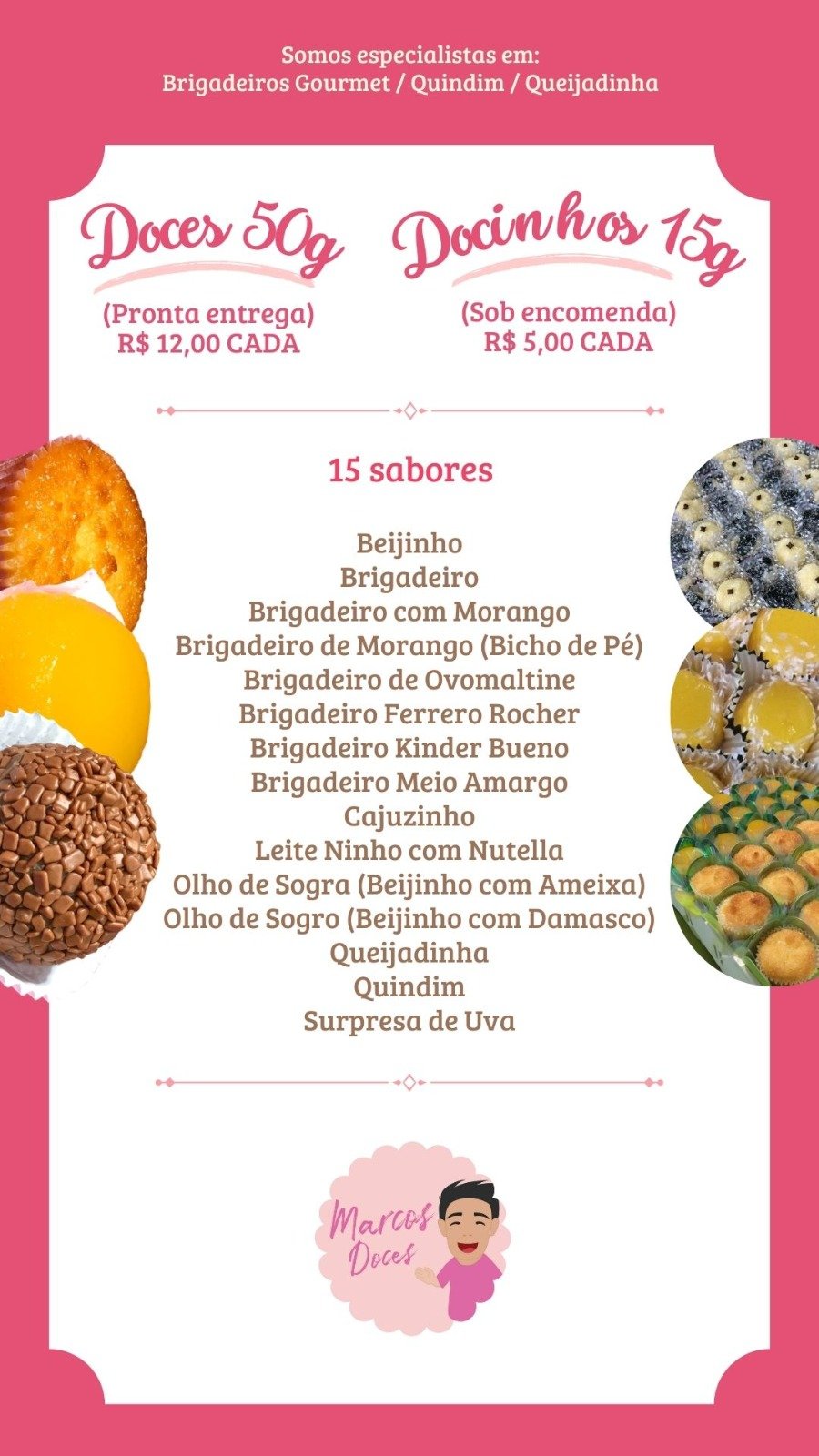 🛵💨Delivery Marcos Doces Docinhos de Festa Brigadeiro Beijinho Quindim Queijadinha